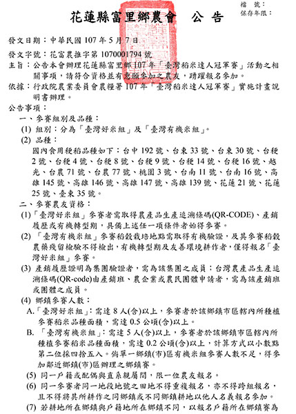 107年稻米品質競賽開跑嚕!!